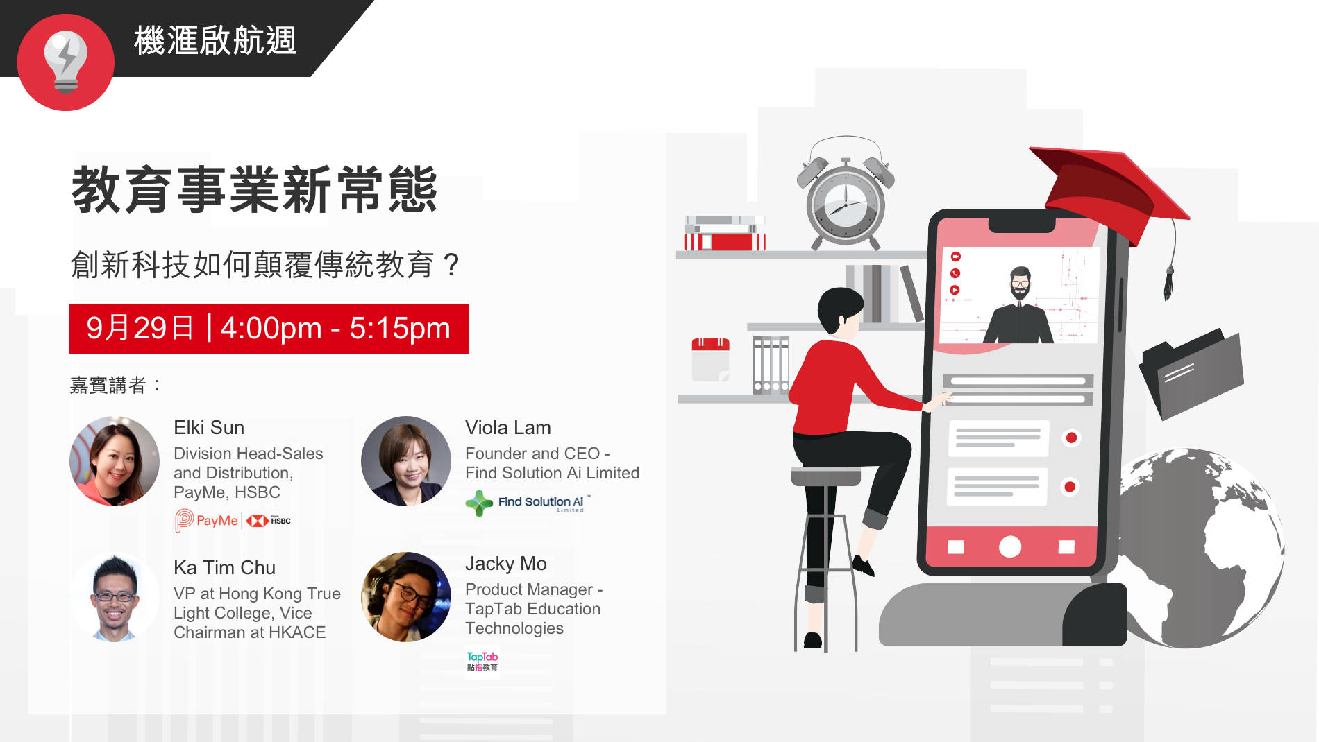 機滙啟航週是滙豐機滙首個旗艦活動,我們邀請了各界別的城中專家舉辦線上講座,在經濟新常態之下為你帶來營商新啟發,並在經濟下行的大環境之下逆境向上。