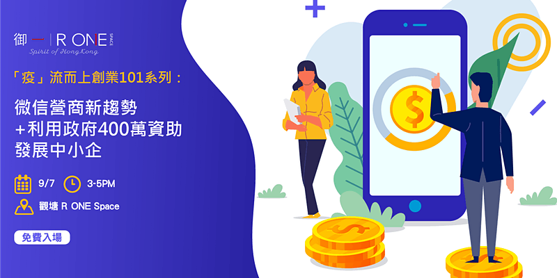 R ONE Space《「疫」流而上創業101系列》第四撃活動講座將於下星期四載譽歸來!今次講座將會以「微信」為主題,由嘉賓講者跟大家分享微信營商新趨勢,以及如何申請和利用政府400萬資助來發展中小企。