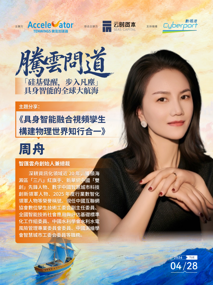 § 16:20-16:45 騰雲加速器會員案例分享:智匯雲舟董事長 周 舟分享《具身智能融合視頻孿生構建物理世界知行合一》