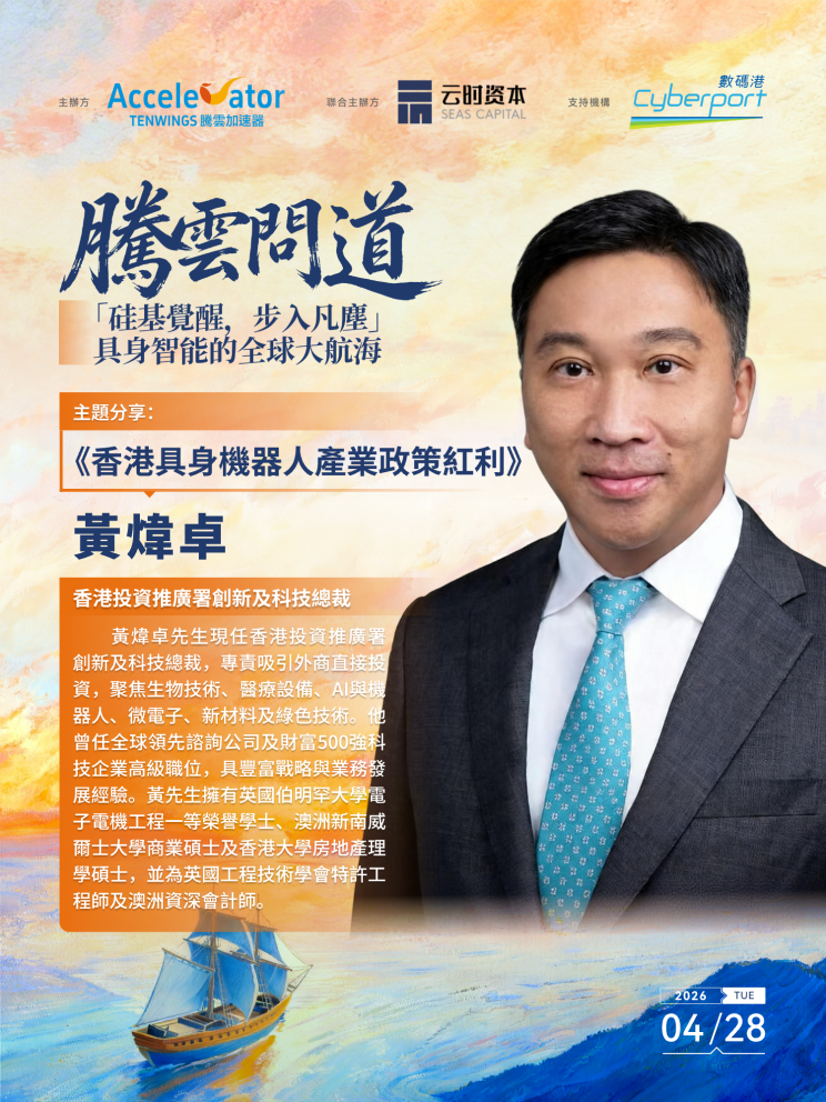 § 14:40-15:00|政策視角:香港投資推廣署創新及科技和生命與健康科學總裁 黃煒卓分享《香港具身機器人產業政策紅利》