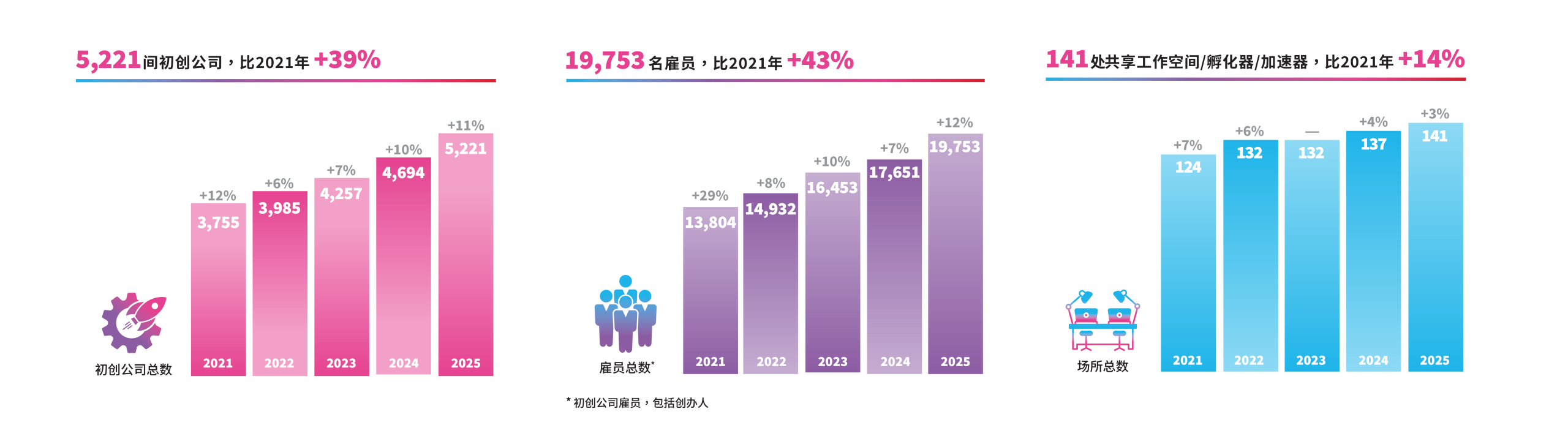 以上资料根据投资推广署一项网上问卷调查的数据所得,于2025年10月定稿。此项问卷调查与55家共享工作空间、 孵化器和加速器营运商合作完成。