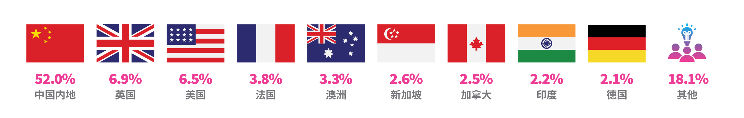百分比乃根据有提供原属国家/地区的非本地创办人人数所得;由于四舍五入的关系,以上个别百分比数字的总和不等于100%