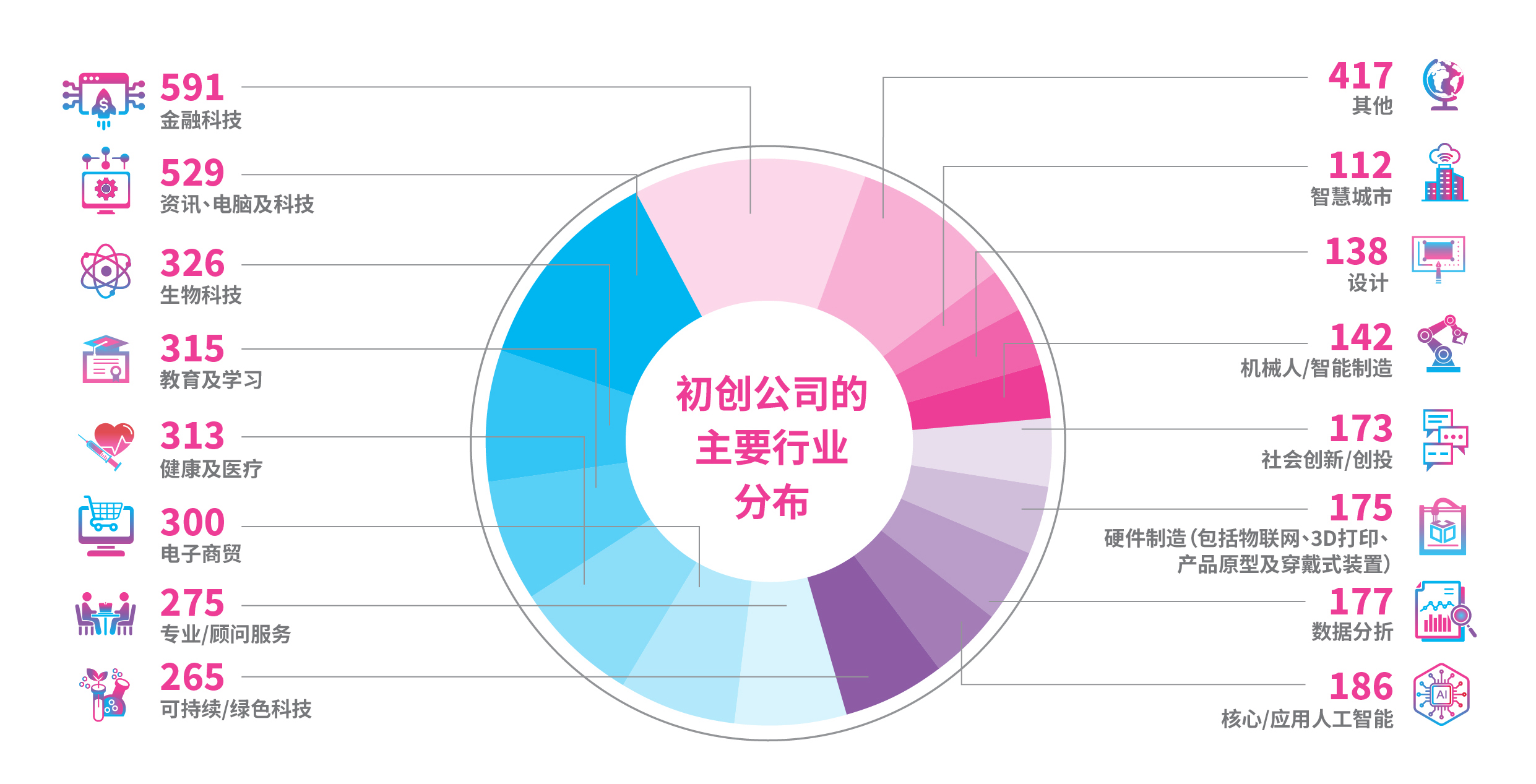 初创公司涵盖多元行业