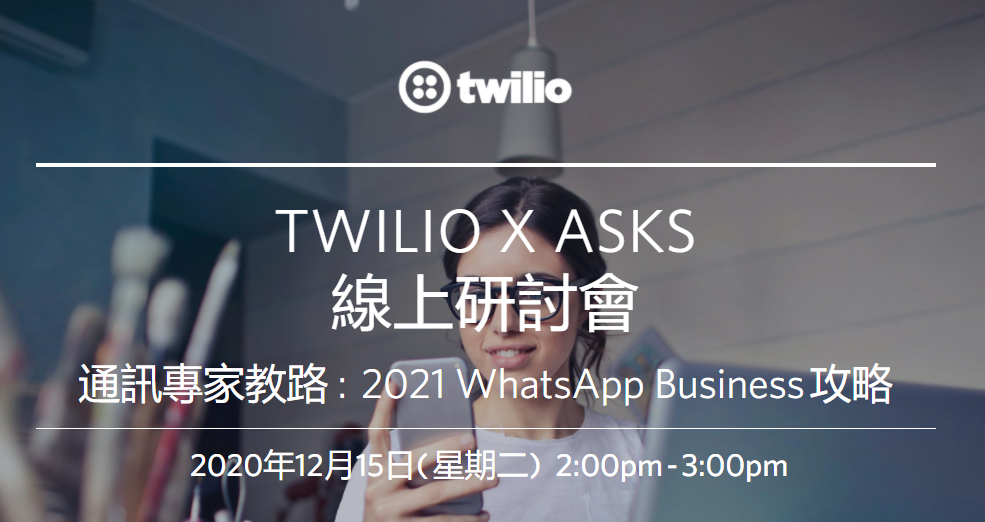 WhatsApp具有高覆蓋率和閱讀率, 一直是眾多企業想好好利用卻一直未能深度挖掘潛力的一個信道。如何好好利用它的豐富媒體支援而同時順應它的交互特色,向來是一個難題。 2020年開始許多WhatsApp商用方案漸露頭角,但主要還是局限於客務服務和內部溝通等常見用法,而同時相比其他通訊渠道,WhatsApp方案的技術和成本門檻都較高,因而尚未獲得市場的廣泛採用。 我們誠邀你参加 Twilio 與 Asks 合辦的線上研討會「 通訊專家教路 : 2021 WhatsApp Business 攻略 」,了解我們最新的交互方案,一起交流及深討WhatsApp Business 的實踐經驗,如何在來年的新一波WhatsApp商用浪潮興起前贏在起跑線。 在此線上研討會中,我們將與你分享: .了解 Twilio WhatsApp Business API 的常用案例,包括客務服務及確認/通知信息 .在 Asks demo 中學習怎樣於5分鐘內創建你獨有的WhatsApp Business交互,無需專門開發資源 .如何使用WhatsApp Business實現客戶溝通和內部營運自動化 無論你是產品經理、數碼創新者還是企業決策者,歡迎你參加此線上研討會,從中獲取靈感,進一步提高客戶體驗和營運效率。 * 此活動將會以廣東話並以線上型式進行。 For more information, please click HERE.