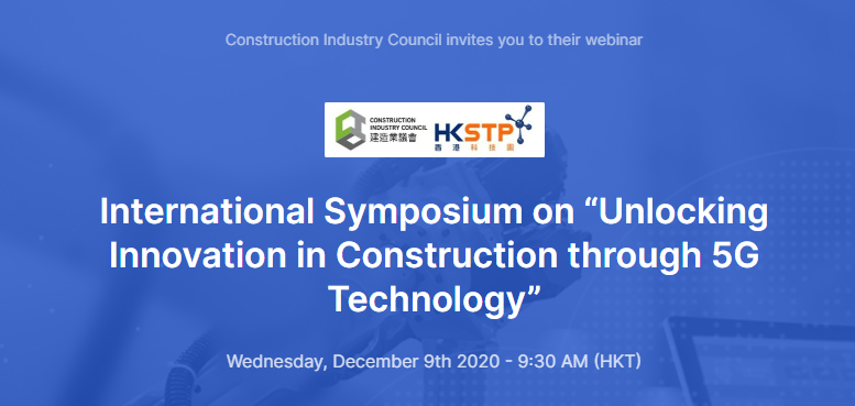 Co-organised by Construction Industry Council (CIC) and Hong Kong Science and Technology Parks Corporation (HKSTP), the Symposium will focus on “Digitalisation and Automation supported by 5G Technology”, bringing together local and international professionals and experts to exchange views on transforming the construction industry.
