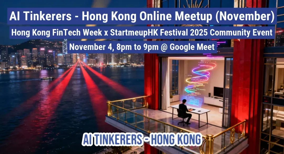 Join the AI Tinkerers Hong Kong & Greater Bay Area community for an engaging online session focused on practical, hands-on experiences building and working with AI. This interactive meetup brings together founders, engineers, and entrepreneurs actively creating AI-powered products using foundation models like LLMs and generative AI. Instead of presentations, participants share real-world lessons, technical challenges, and creative solutions through open discussion and live demos. Expect a collaborative exchange on topics including system reliability, prompt design, and safe AI integration—fostering authentic learning and innovation within Hong Kong’s fast-growing AI ecosystem during Hong Kong FinTech Week x StartmeupHK Festival 2025.